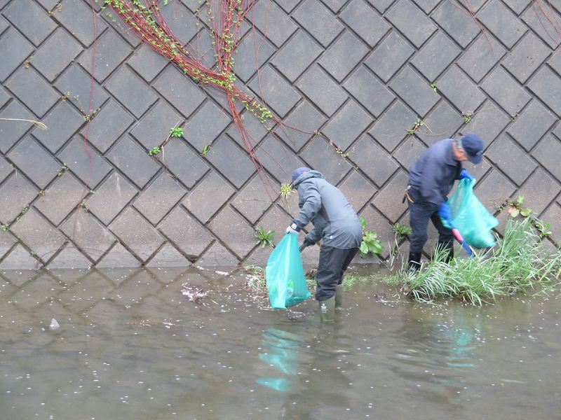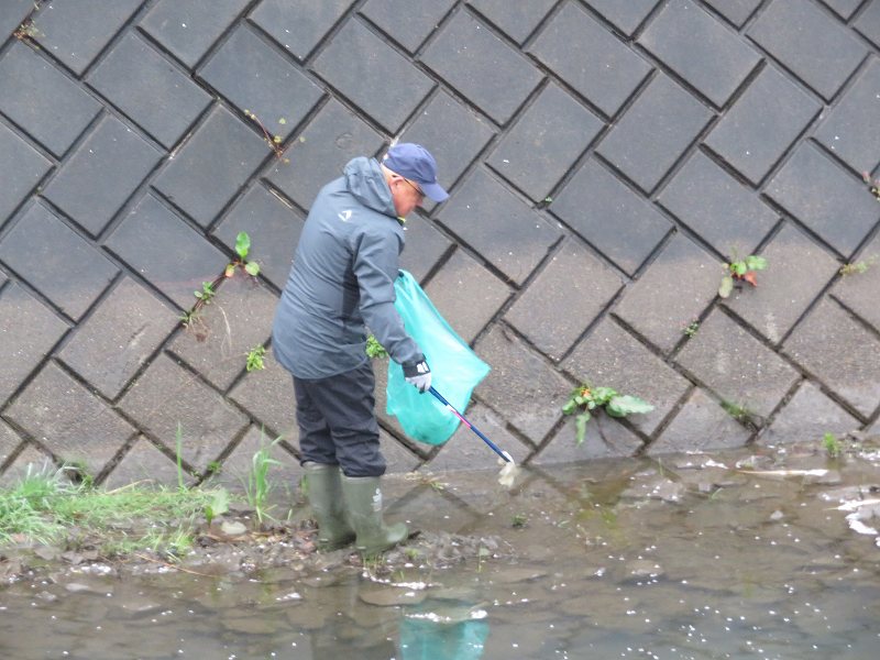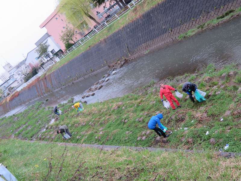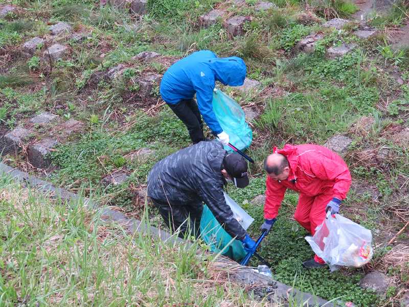 当日は,小雨の降るお天気でしたが,雪解け後の河川のゴミを拾いました。